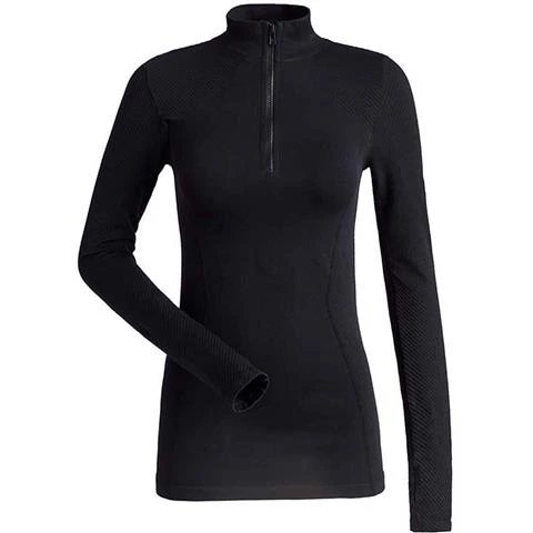 Midweight seamless 1/4 zip t-neck with tonal texture. Body hugging fit and natural wicking properties.